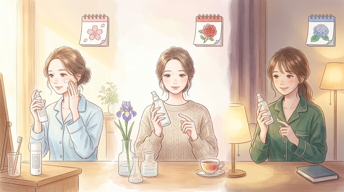 「冬はスクワランオイルを1滴足している」「冬の時期はクリームでふたをする」といった声があるように、気温や湿度が低い時期は乾燥を補うために使用量を増やすケースが多くあります。